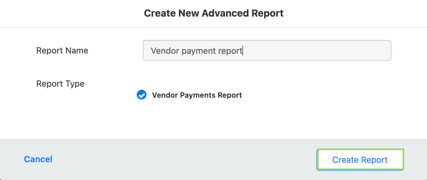 3. Within the Expense Reports page, click on the icon '+' and add 'Vendor Payment Report'.